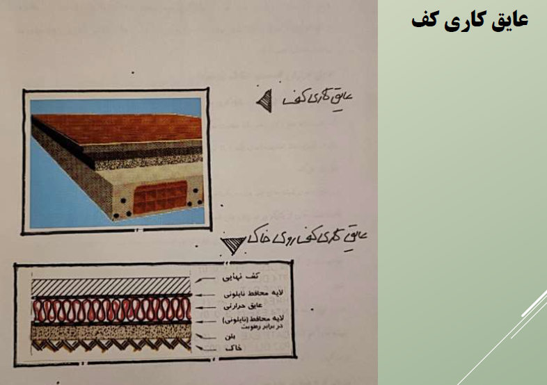 - استفاده از عايق رطوبتي در تمامي مكان هايي كه در معرض آب قرار دارند الزامی است.