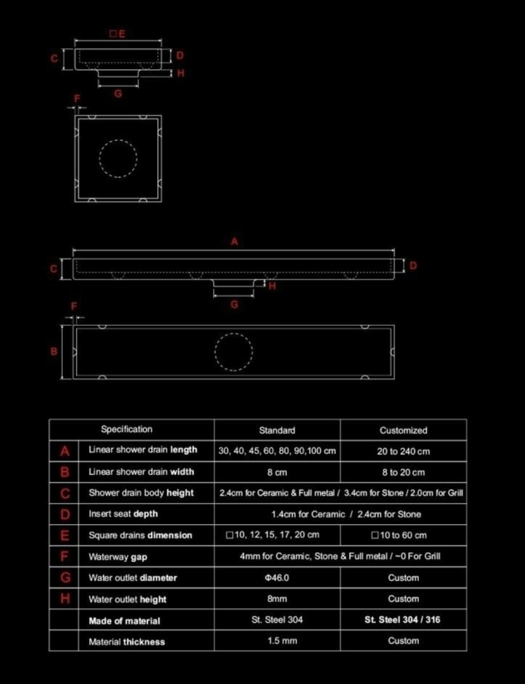کف شور خطی نما استیل ۱۲۰*۷