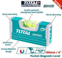 تراز جیبی توتال سایز 10 سانتی متری به راحتی قادر است سطوح مختلف را در محورهای افقی و عمودی اندازه گیری و به شما در مشاغل مختلف کمک کند.
