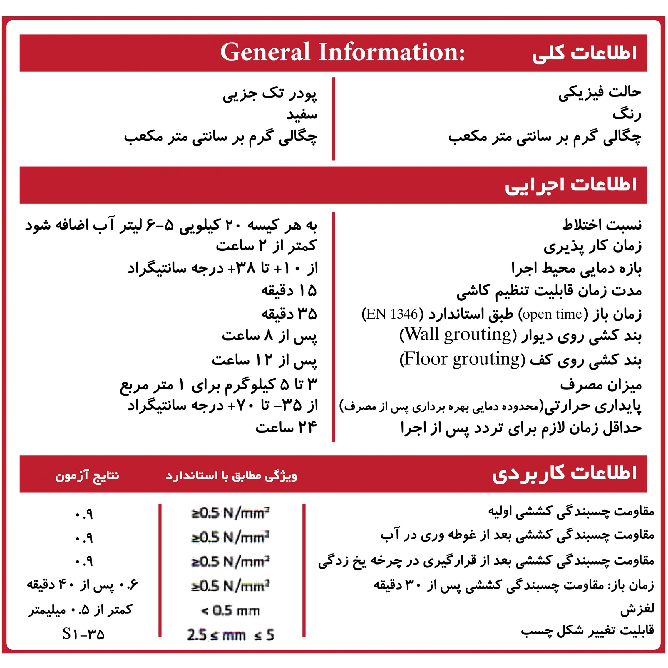 چسب کاشی پایه سیمان ، با گیرایش عادی C1 ، طبق استاندارد ملی